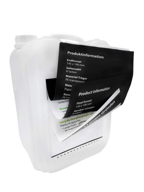 Mehrseitige Booklet-Etiketten sind die Lösung.